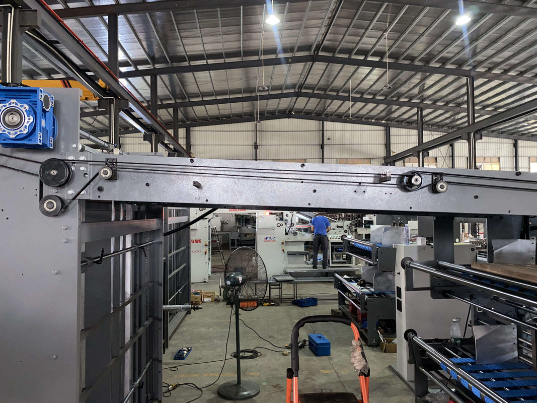Automatyczny 5-warstwowy laminator fletowy to wzmocniony model przyjmujący dwa dolne podajniki i jeden górny podajnik, szczególnie odpowiedni do laminowania dwóch pojedynczych rowków i jednej górnej tektury w 5 warstw lub dwóch pojedynczych rowków w tekturę falistą, działając również jako zwykły laminator fletowy do przenoszenia grubszych i dużych Deski wielkości płynnie i swobodnie, przyjazne dla operatora.